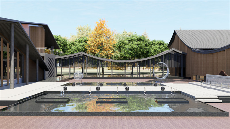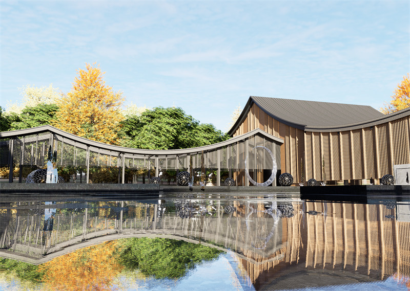 “庭院”的场景元素极富个性,微妙的空间结构,外观呈现出传统的木质结构,常常使用天然的木材和原木装饰,营造出一种自然的韵味。使整个中式庭院的形象以极为生动、立体的形式,营造出一种层次感和空间感,体现了中式府邸的优雅与宁静。错落有致的建筑布局,与周边的湖畔森林相互呼应。临湖一侧,客房的阳台仿若悬浮于水面之上,凭栏俯瞰,湖水波光粼粼,倒映着天空与岸边的翠影,微风拂过,泛起层层涟漪,似是湖的浅笑