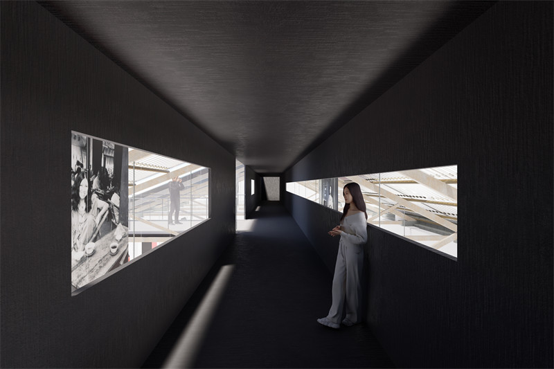 项目场地位于榆林古城文青部落,我选择了三毛一生各个阶段最打动我的十张影像,以空间叙事的方式主导博物馆的流线设计,观者将通过被设定的路线不断前进向上,在特定的空间停留,解读三毛的人生时刻与作品,行至展览的终点,最终回到地面。设计过程中尽可能的减少拆除,通过增加横跨的新体量联系两栋原有建筑,加强场地的整体性,并通过原有建筑结构秩序的延伸和扩散,形成了场地内的新结构,减轻老建筑结构的承重,同时使得场地的联系性更紧密。通过为场地赋予博物馆的新功能,以及为“文青”打造的酒吧、摄影工作室等功能,让场地焕发新的活力。