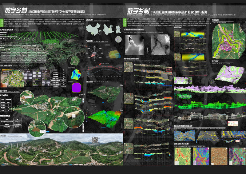 设计思路:通过无人机倾斜摄影和大疆智图生成精确的三维实景模型,再由Lidar360和南方CASS处理点云数据,形成数字地形和表面模型。这些数据为设计提供科学支持,帮助设计团队全面理解场地,为后续规划打下坚实的基础。