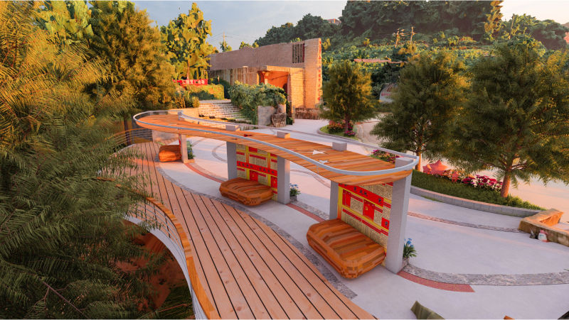 设计思路:借助3ds Max和SketchUp等建模工具,将不同分区的方案与实景模型叠加,利用Lumion进行场景渲染,确保设计效果的真实还原。通过PTGui拼接生成高清全景图,并结合720云全景展示平台,让游客通过扫码即可浏览,获得沉浸式的虚拟旅游体验。