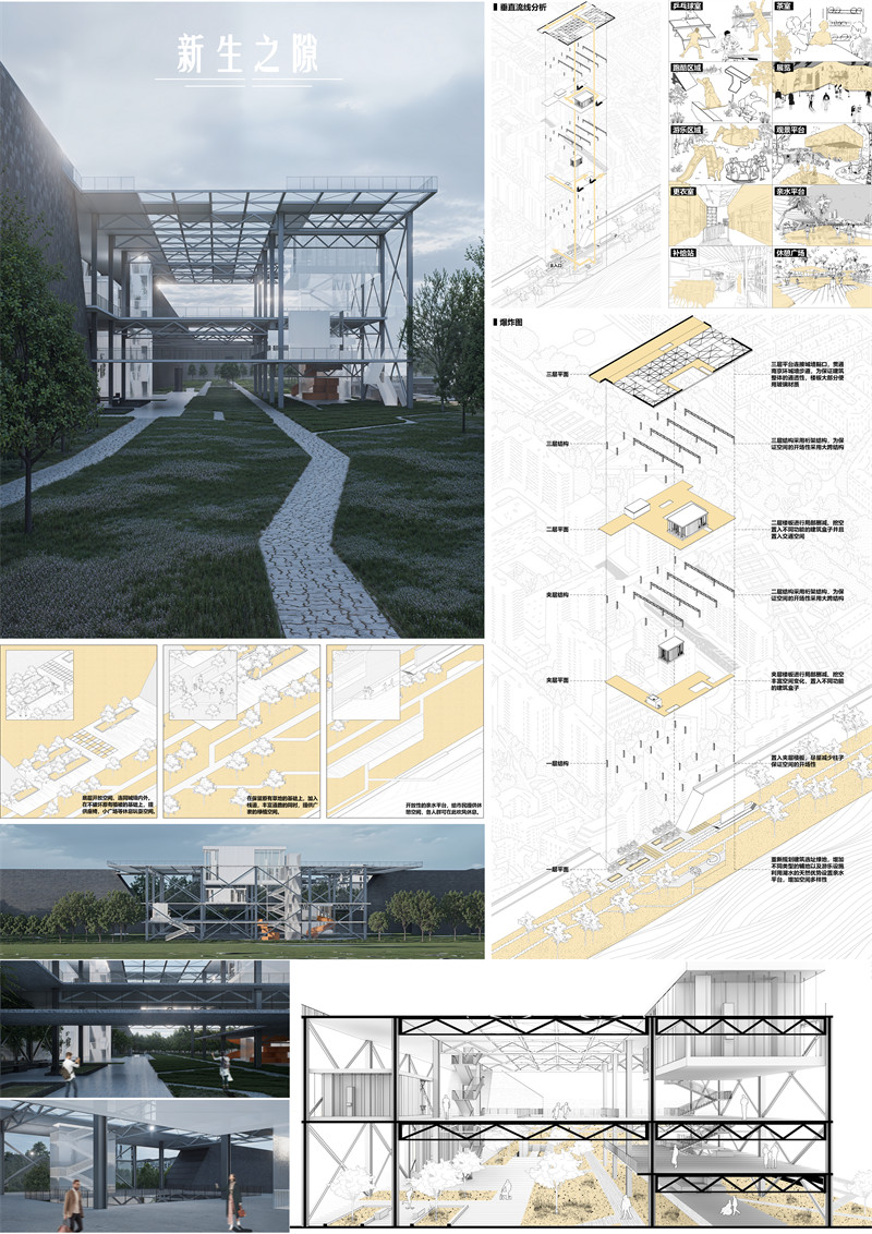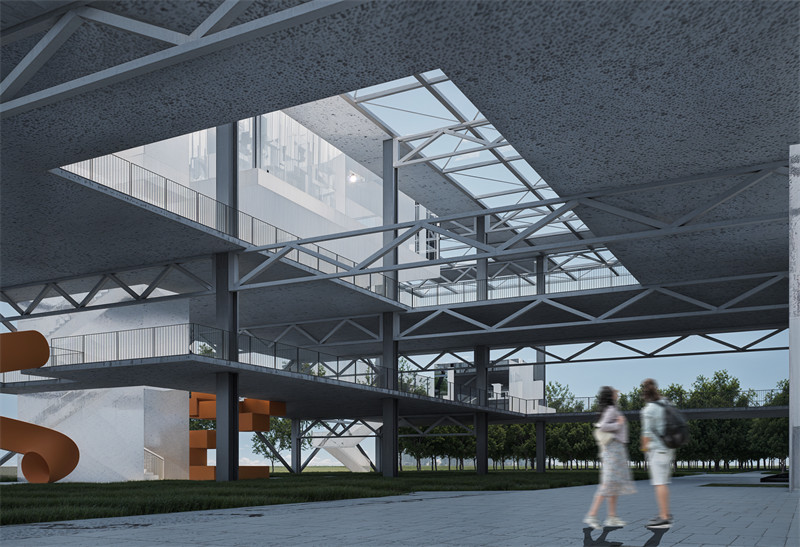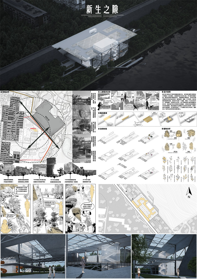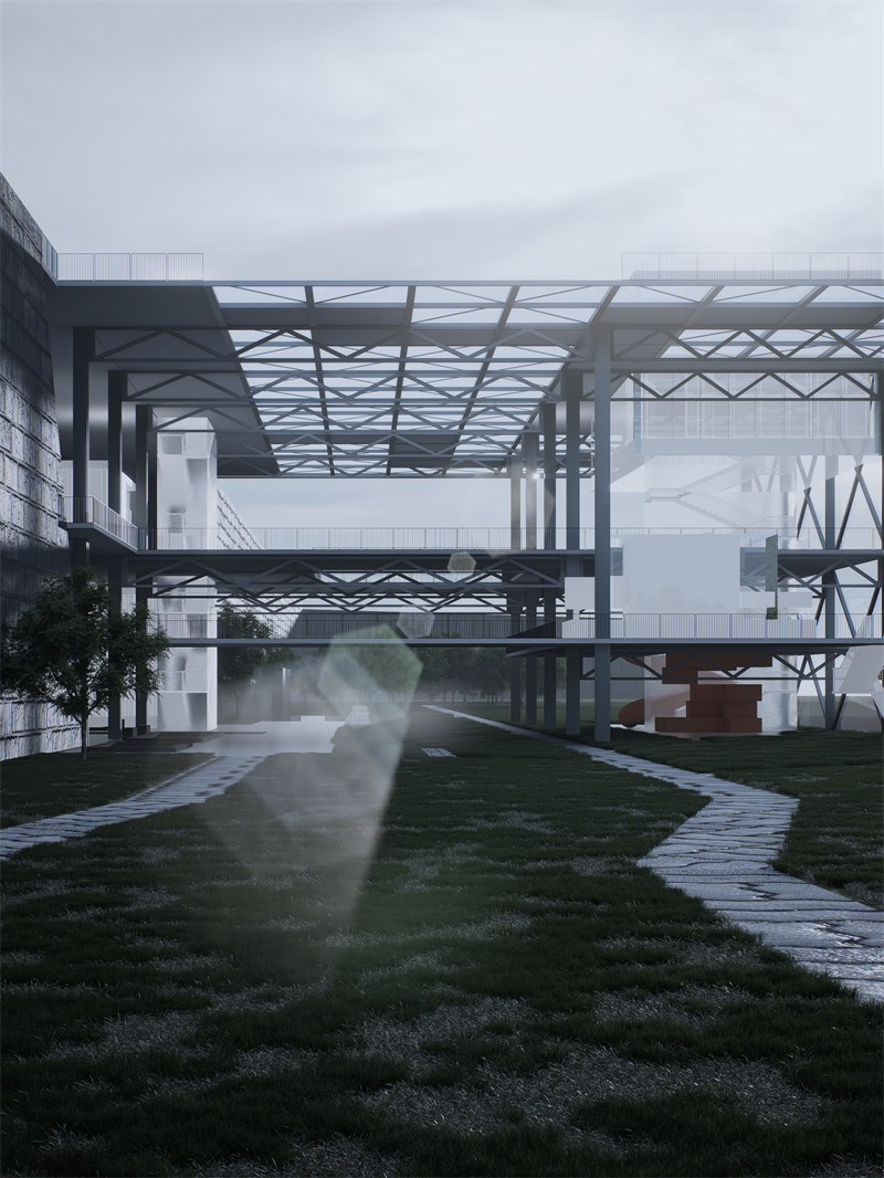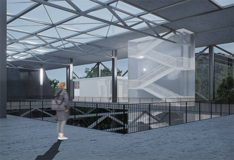 项目之初,我们希望在南京这座古老的、别具一格带有自己历史文化的城市中找到一处节点,在不破坏原有城市面貌的同时可以对其进行更新改造最终服务于民,可以将空间还给居民。在实地寻找后最终确定了此处选址。豁口活力驿站位于南京城墙段的豁口处,旨在通过建筑与景观设计修复这一历史遗址,连接居民区与生态公园,并打通环城墙步道,将位于南京城墙的环城墙步道可以串通,不会因为被雨水冲刷而断开,同时环城墙步道打通以后可以吸引人群前往公园,提高人流量,唤醒前湖公园的空间活力。驿站采用现代钢结构设计,兼具美观与稳定性,在外观处理上我们选择了透明的玻璃材质为主,使得从城墙整体上看不会破坏城墙的整体感,同时又能让人们从视觉上感知到驿站的存在。驿站包含多功能休憩区和开放式运动空间,提供座椅、绿植、乒乓球场、游乐设施和跑道等设施。我们希望该项目不仅是一个通道,更是一个社区活动节点,是新旧交替城市面貌的一个大门、入口,由此进入人们可以感受到从现代城市交替至拥有历史文化的这座金陵城。通过驿站的存在促进健康、休闲和社交互动。设计灵感来源于南京城墙的历史文化,通过现代手法与传统文化的融合,体现对历史的尊重与对未来的展望。驿站的建设不仅增强了社区的社会纽带,改善了城市环境质量,还为居民创造了一个充满活力的公共空间,重新定义了城市运动空间的功能和意义。