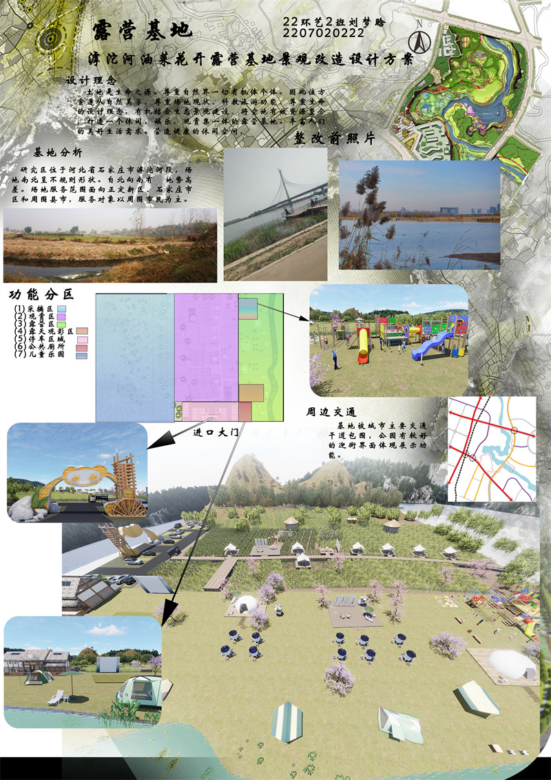 整改空地位于河北省石家庄市滹沱河岸边,随着当前社会经济发展,人们的精神需求日益提高。将空地有效资源整合,打造一个休闲,娱乐,观赏集一体的露营基地,丰富人们的美好生活需求,既做到了有效资源利用也能带动周边经济发展。利用环境优势,充分满足油菜花的生长环境。油菜是直根系作物根系发达,主根深且细根多适应环境能力强,各生育阶段对水分的需求不同,需要及时灌水。利用河边空地种植既能解决灌溉问题又美观。