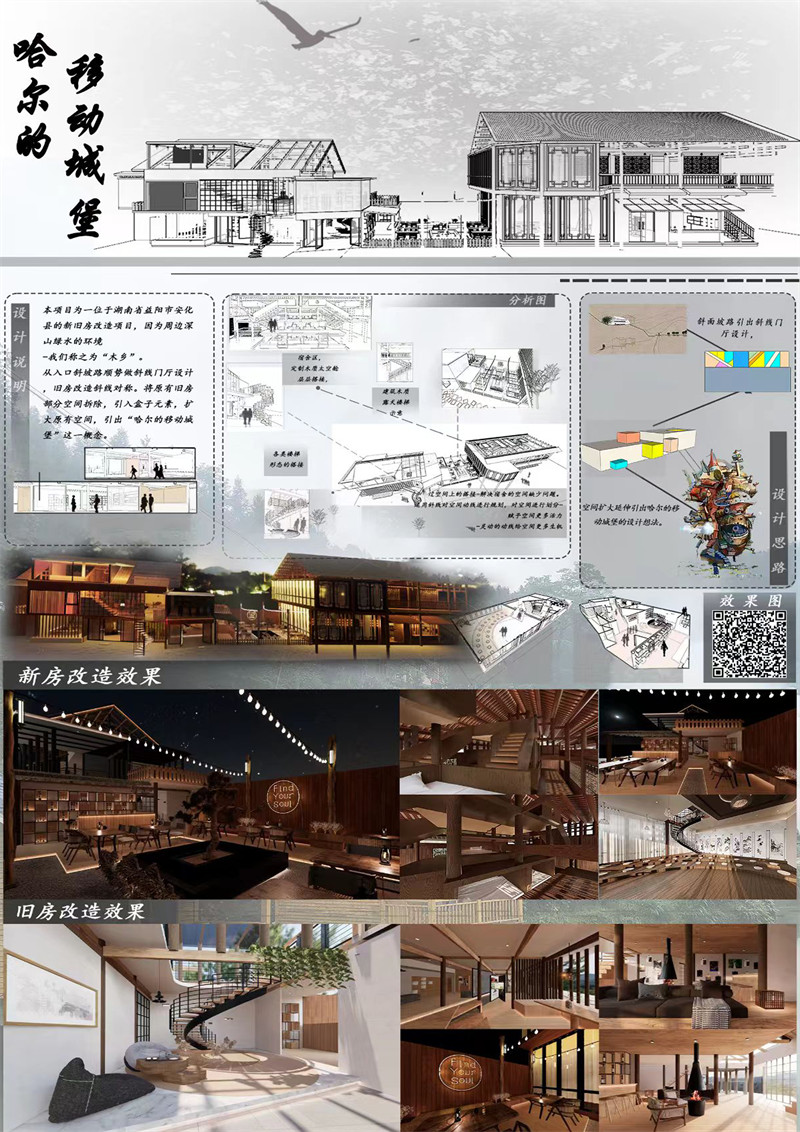 项目要求:从真实的感知出发,利用各种材料和工艺,创造凸显地域性、感性和可持续性等审美价值的空间,并将其转化为传承本土文化的有吸引力的空间,将一新一旧相邻两房改造为面向中小学生的素质研学基地,要求带住宿功能。
