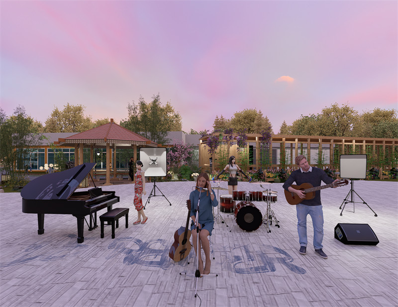 根据该地所处的位置与活动情况来考虑,将其设计为可散步休闲、也可举办活动的户外活动空间。