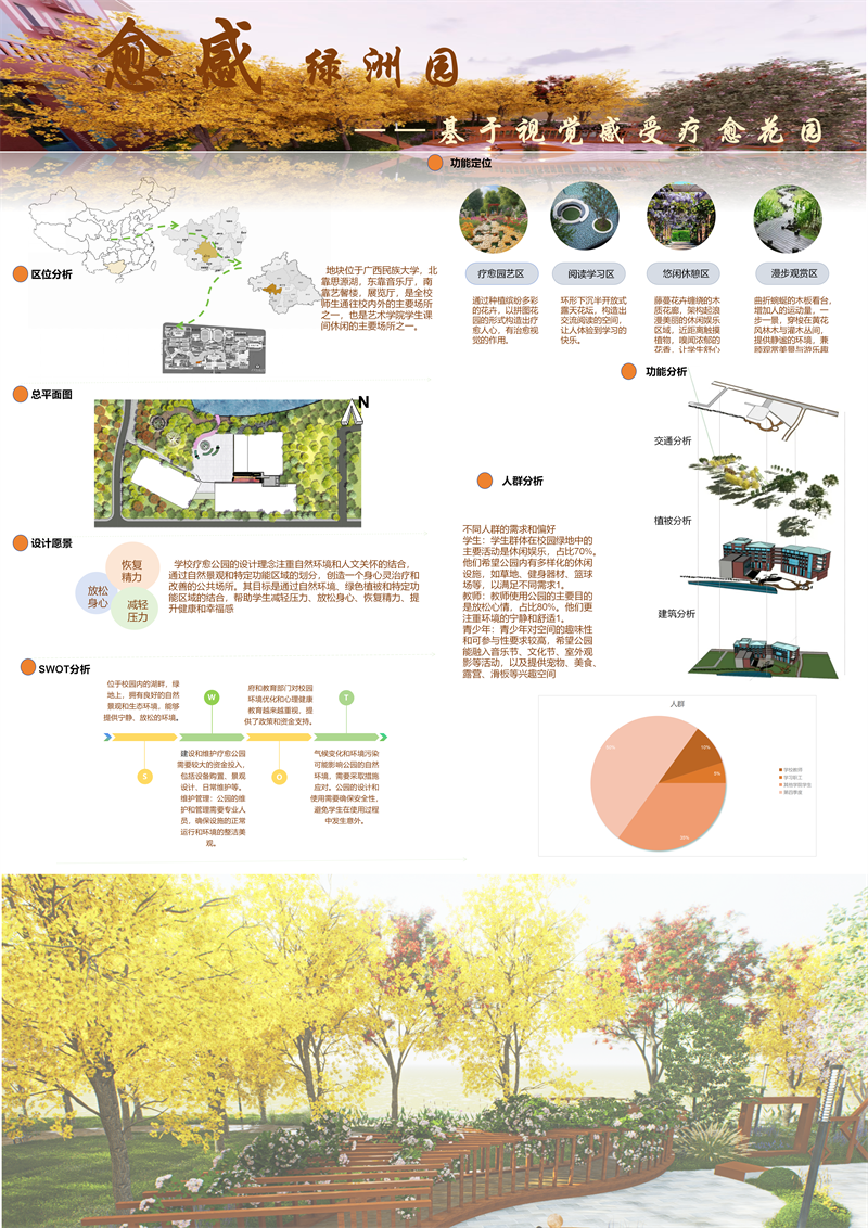 2.作品名:愈感绿洲园 – 基于视感下的疗愈花园