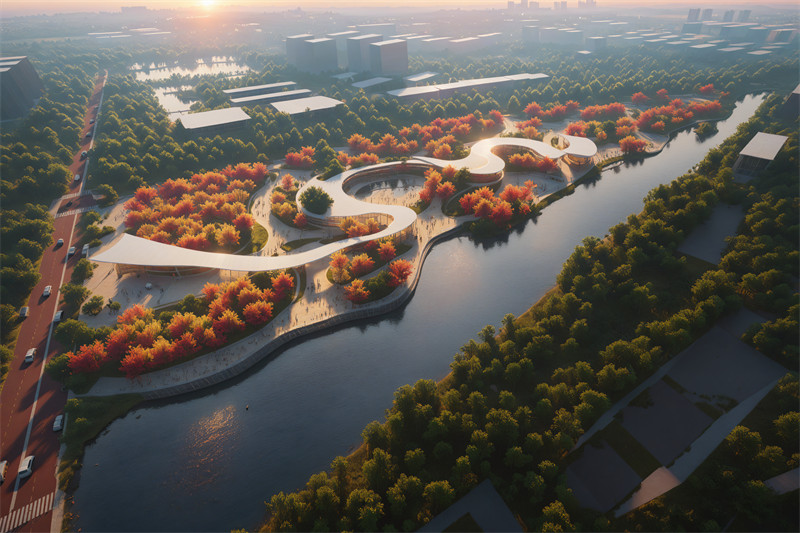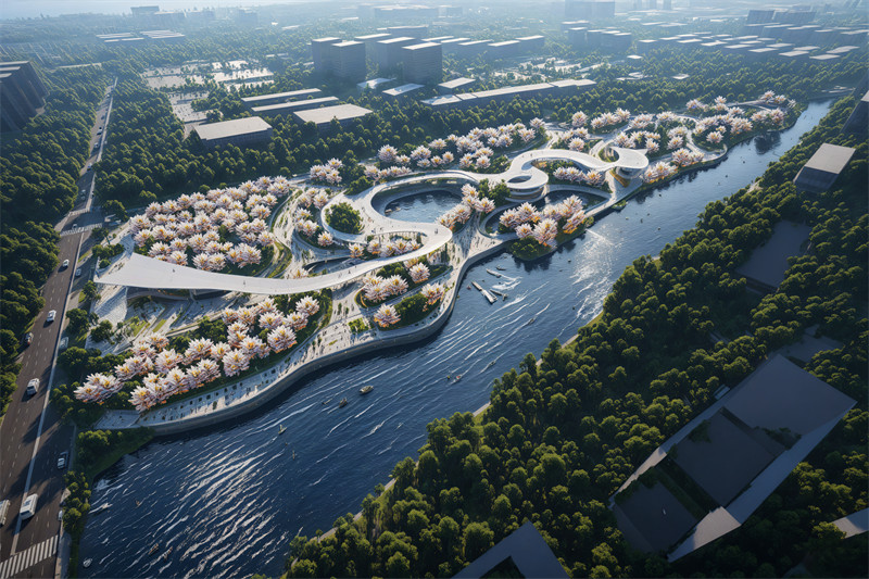 樱花公园本身具有一定的生态环境基础,但周边的城市建设可能对其产生一定影响。通过生态环境改善和景观提升设计,可以进一步增强公园的生态功能,如增加绿地面积、改善水体质量等。