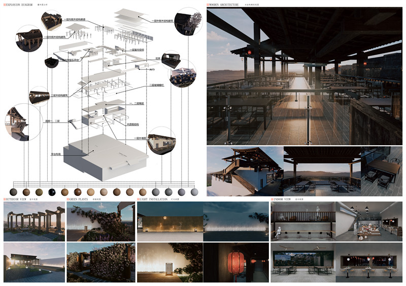 外部木结构建筑:提供娱乐休闲,茶饮洽谈,学习交流的区域。