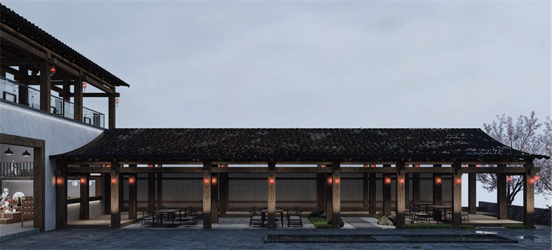 外观设计 : 建筑的主立面,通常以传统木材的纹理和色彩作为焦点,给人一种自然、温暖的感觉。