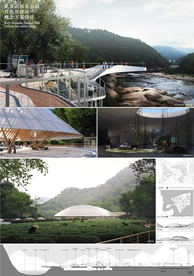 2.作品名:武夷山国家公园月亮湾驿站概念方案设计。