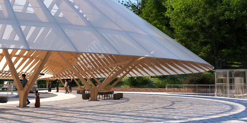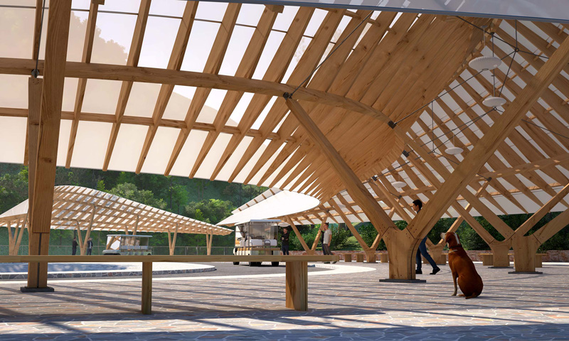 - 材料建造——从当地传统营造中汲取灵感,就地取材,建造方式尽量采用低影响度的方法,材料在全寿命周期内力争做到环保可逆。