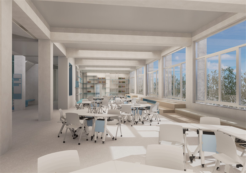 六层作为特色空间,我们计划打造为学术交流与休闲区域,配备舒适的座椅与咖啡设施,为师生提供交流与放松的场所。