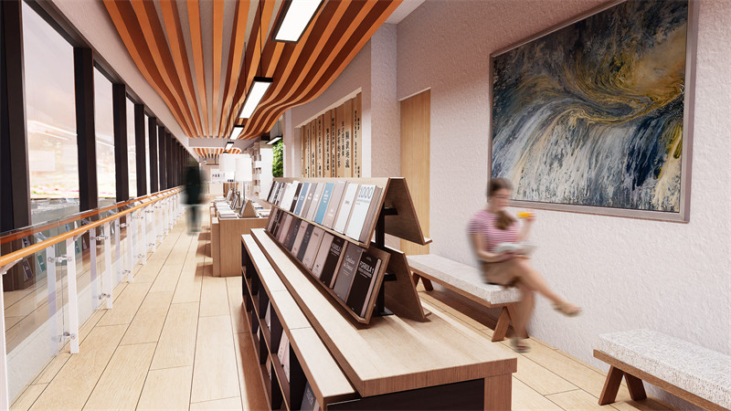 具有地域特色与生态融合的文化空间,营造清新优雅的阅读环境。