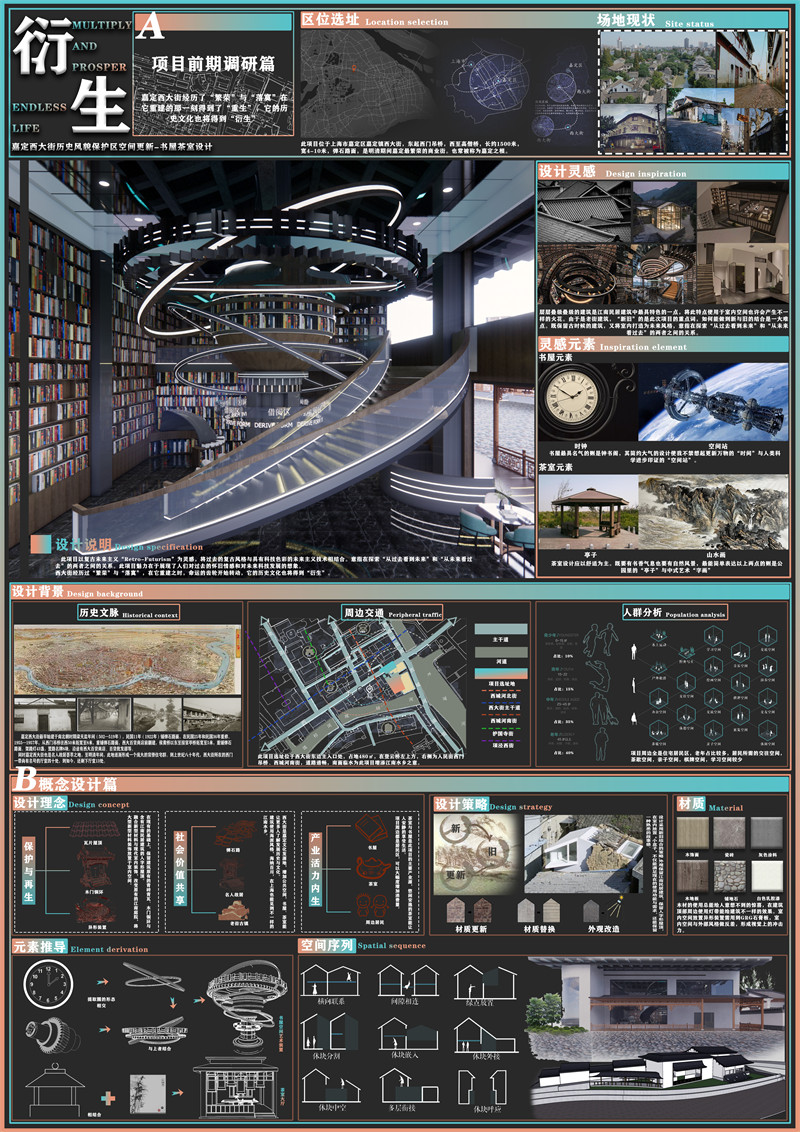 此项目主题为“衍生”,位于上海市嘉定区西大街,占地4000㎡,主要做书屋、茶室、博物馆建筑,室内空间以书屋和茶室为主。
