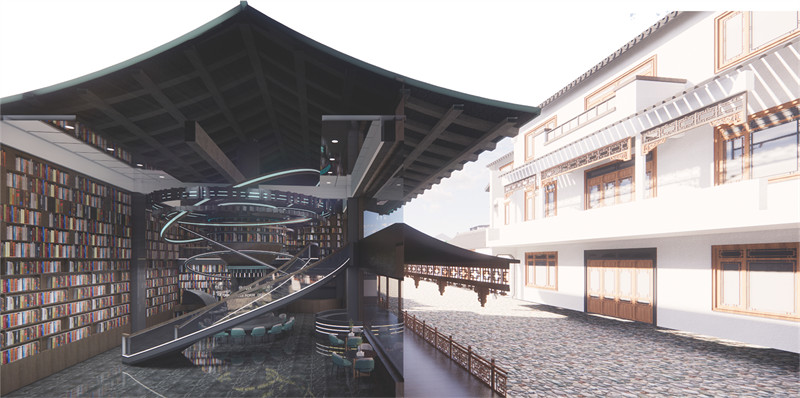 此项目的设计策略为保护部分原始建筑:不仅能满足现在的使用功能与需求,还能保留一种熟悉的故事感。新旧的结合:外观保留江南民居建筑,保留人字形屋顶,内部结构使用现代机械构建,给人一种强烈的冲击力。