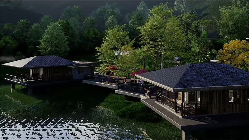 在设计思路上,我们考虑空间布局的分配,根据原本的地形地貌进行空间布局,充分利用自然资源,如山地、溪流等,打造独具特色的户外休闲空间与室内流动空间分配。同时,注重室内空间的通透性和采光性,让自然光线充分照入室内,营造温馨舒适的住宿环境,搭配独居特色景居结合,将住宿情感体验将周边山地环境结合,打造独具特色的乡村假日民宿设计。