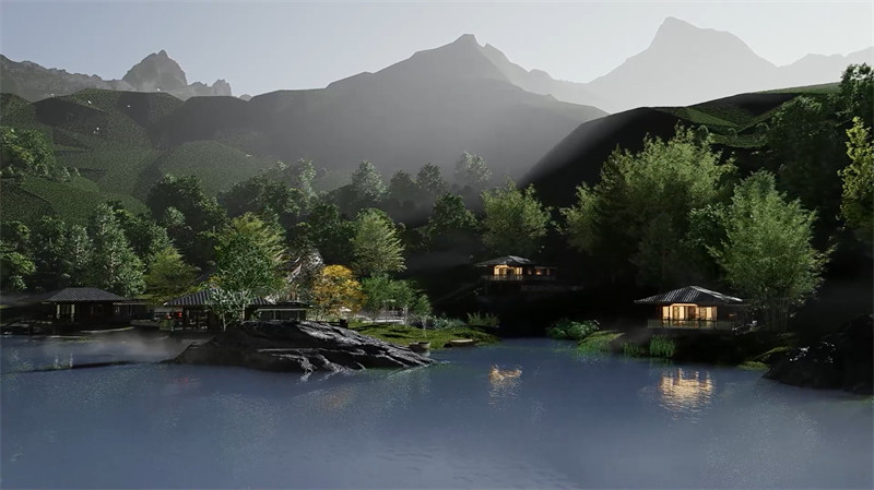 基于以上场地建设,我们加强了功能设置,在满足游客住宿需求的基础上,增加休闲娱乐功能,如茶室、餐厅等,让游客在享受自然美景的同时,也能品味美食和茶文化。创新设计同时也注重细节设计,如家具的选择、灯光的设计等,都要与整体新中式风格相协调,营造出独特的氛围。同时,我们通过设置一些新中式装饰品或艺术品,提升民宿的文化内涵和艺术价值。