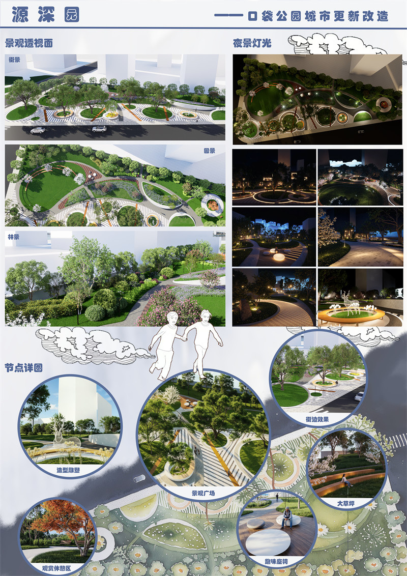 我们的设计理念是以城市绿洲、人文关怀为核心,注重功能多样、生态环保和文化特色。通过合理的设计,创造出具有人文关怀、绿色环保、富有文化底蕴的口袋公园,为人们提供舒适、便捷、温馨的休闲环境。