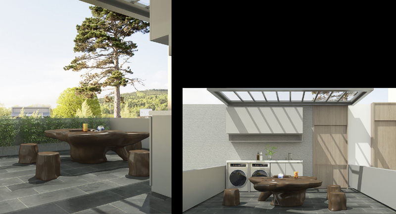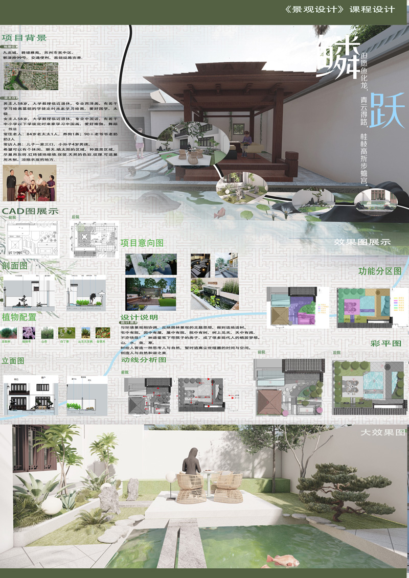 庭院方面,男女主人有晾晒和种植需要,给男女主人预留了这些区域,入门设计了影壁,影壁作为重要的古典园林元素,在强调墙后的风景时又屏蔽了大部分的风景。风水上还有却风挡刹的作用。同时前院设置了亭子和鱼池,供业主休闲娱乐和观赏。后院更有露台平台和花坛,感受阳光感受自然感受鸟语花香,古典园林三要素即:水、石、木。水之庭院犹如人之灵魂。水灵动的气质赋予人类聪明智慧。后院水池与假石更是有灵动之美。
