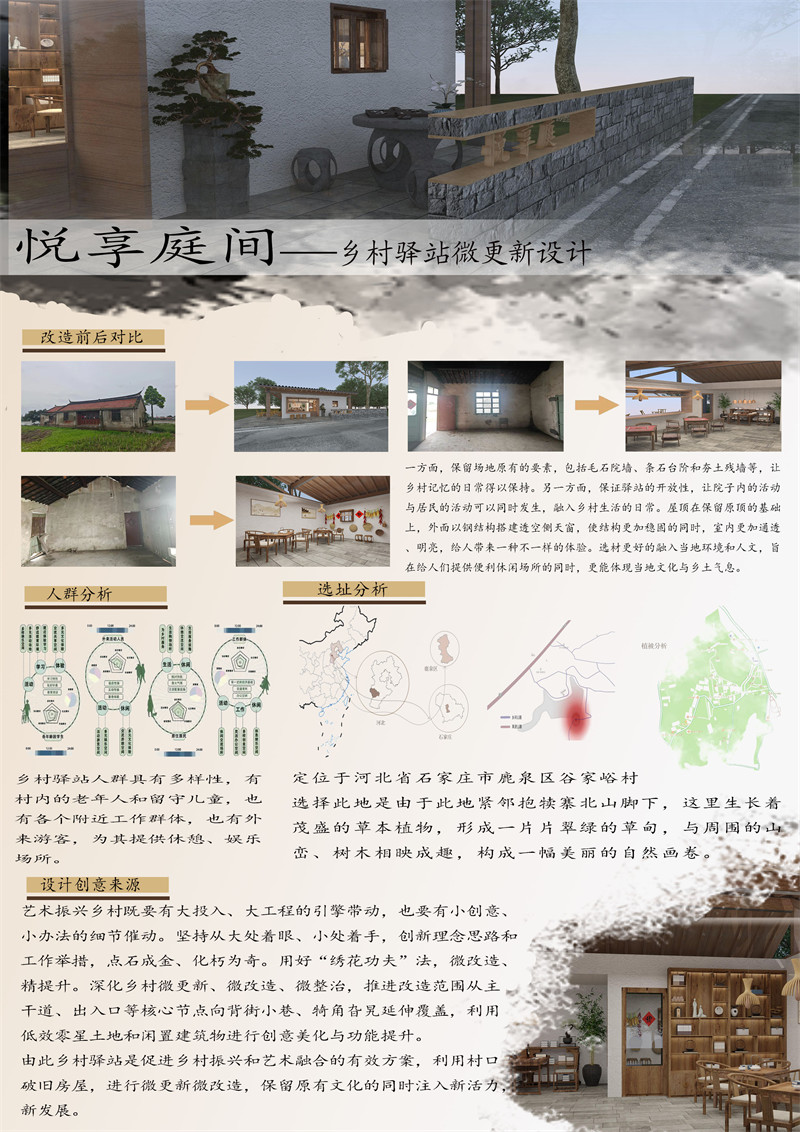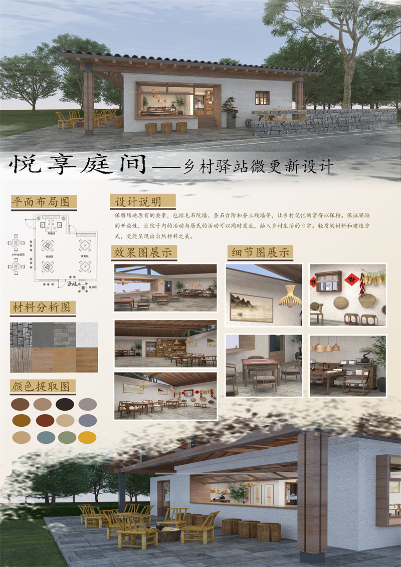 本设计秉持着“融合、创新、服务”的理念。我们将乡村的自然元素与现代建筑风格相融合,营造出既具有田园诗意又充满现代感的空间。驿站不仅是一个物理的场所,更是一个汇聚智慧、激发创意、促进交流的平台,为人们提供全方位的支持与服务。
