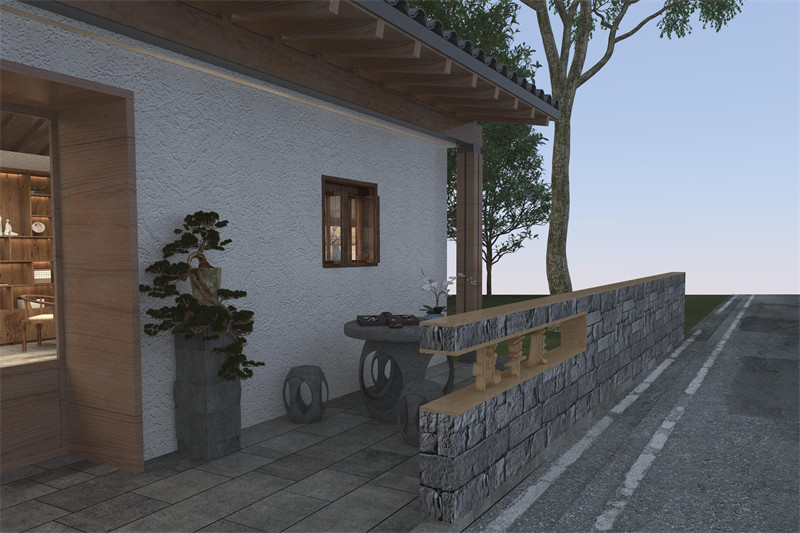 本设计希望新建筑能融入乡村当下的状态,而非简单移植城市中的公共空间,因此称之为“质朴的日常”,并从乡村的空间和事件两个方面展开。 一方面,保留场地原有的要素,包括毛石院墙、条石台阶和夯土残墙等,让乡村记忆的日常得以保持。另一方面,保证驿站的开放性,让院子内的活动与居民的活动可以同时发生,融入乡村生活的日常。 轻质的材料和建造方式,与传统的砖石、混凝土等相比,除了建造效率大幅度提升之外,木材属于可持续发展的材料,对环境的污染更小,更能呈现出自然材料之美。