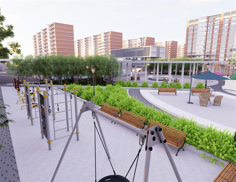 地形平坦,交通比较方便,多以广场为主,配以简单的体育器械,建筑造型别致,周围环境景色优美。