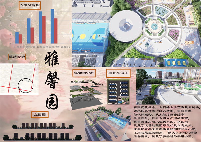 公园是城市的绿色明珠,承载着人们休闲、娱乐、健身、放松与亲近自然的多种需求。“园雅,文雅、不俗气、美好、标准。象征文雅、正直。馨,芳香,散布很远的香气。园的环境身在其中可以让人感到放松,心情愉悦。其可以分为三个功能区: