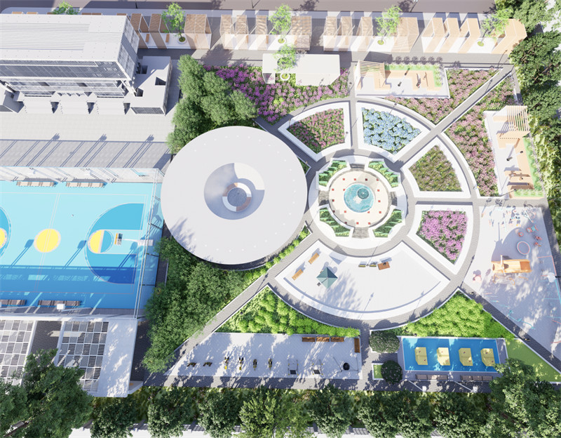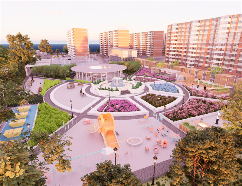 提供给人们游览、休息、赏景,或开展轻微的体育活动等的场地。公园中有很多花草树木的设计忙碌了一天的人们可以坐在凉亭和座椅上休息、赏花,以蜿蜒小径串联起花园、草坪以及其他建筑物,其中心的喷泉除了有美化环境的、作用,还可以美化环境、改善空气质量和增进身心健康。