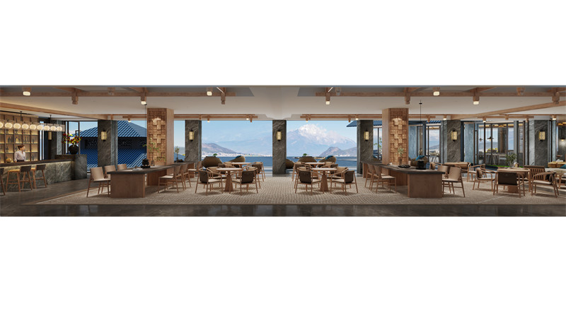 (1)入口区域改造:当前酒店入口缺乏足够的仪式感和辨识度,不利于提升酒店形象。改造方案将重新设计入口区域,增加具有纳西文化特色的艺术装置和景观元素,增加第一大堂,让游客体验尊贵的双大堂体验感。同时,设置明显的指示标识和迎宾区域,提高宾客的到达体验。