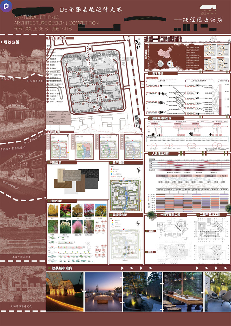 3.设计理念及思路:丽江悦云酒店位于风景如画的丽江市,临近历史悠久的束河古镇,背靠雄伟的玉龙雪山。然而,随着时代的发展和游客需求的变迁,酒店现有的配套功能已显不足,装修风格亦略显陈旧,无法充分满足现代游客的多元化需求。因此,本次整改项目的宗旨在于通过全面的建筑、景观及装修改造,将悦云酒店打造成为一家集纳西文化体验、现代舒适住宿与多功能活动空间于一体的特色酒店,尤其强调在后疫情时代下,为游客提供安全、健康且富有地方特色的旅游体验。