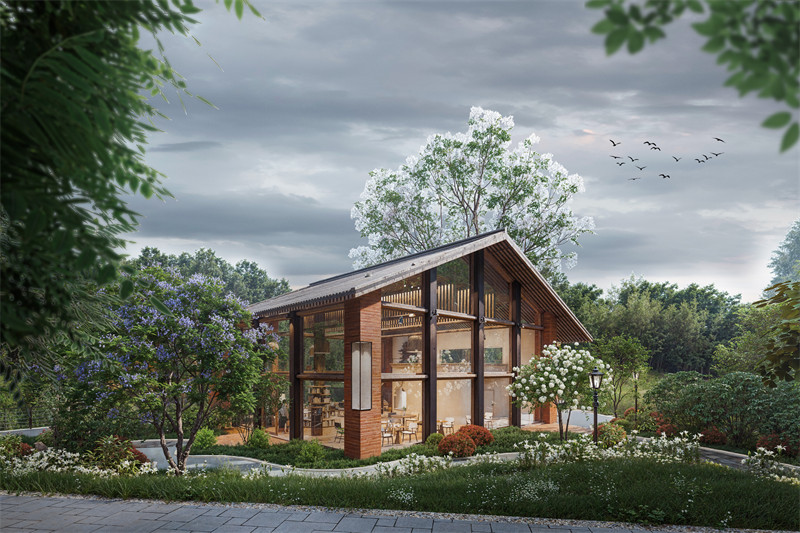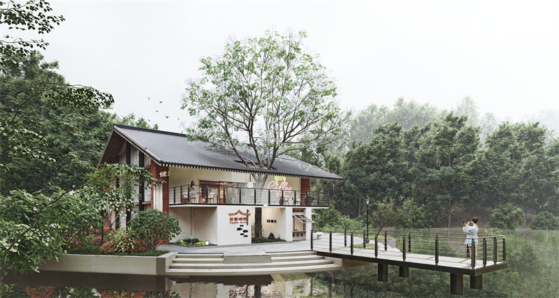 周边景观设计延续场地自然肌理,通过步道、花坛和小型休憩节点的布局,与咖啡馆的功能联动,为景区注入新的吸引力与生机。