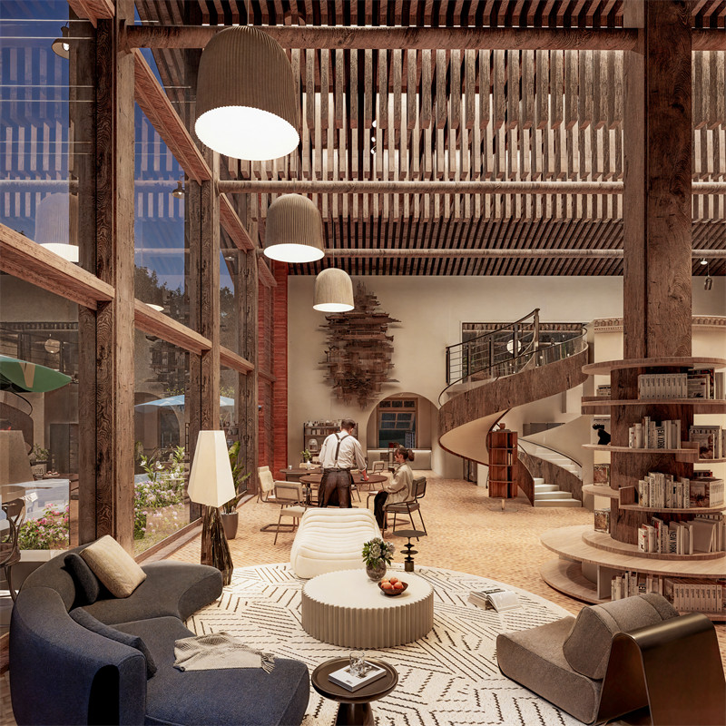 一楼设为开放式咖啡厅,与周边景观步道形成连贯的流线,游客可随意出入,增强空间的互动性。