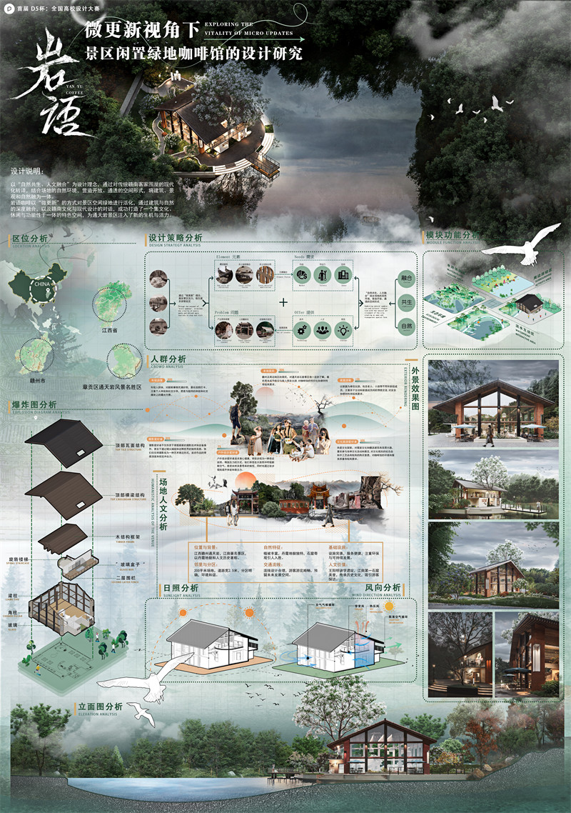 2.作品名:岩语咖啡(YanYu Café) – 基于微更新视角的景区闲置绿地咖啡馆设计研究