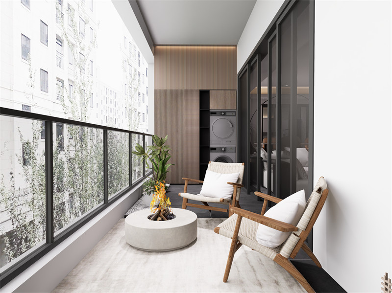 在整体布局上,我们采用了开放式设计,打破传统空间格局的限制,使客厅、餐厅、厨房等主要功能区域相互融合又各自独立,形成流畅的生活动线。客厅与餐厅之间没有进行隔断,保证了空间的通透感。客厅中,宽敞舒适的沙发组合搭配造型独特的茶几,围合出一个温馨而大气的会客厅。因阳台与客厅和主卧联通,所以我们充分了利用阳台的空间设计了一个小型花园,并在外弄个小型茶桌,能使居住者在聊天饮茶时,放松心情和压力。