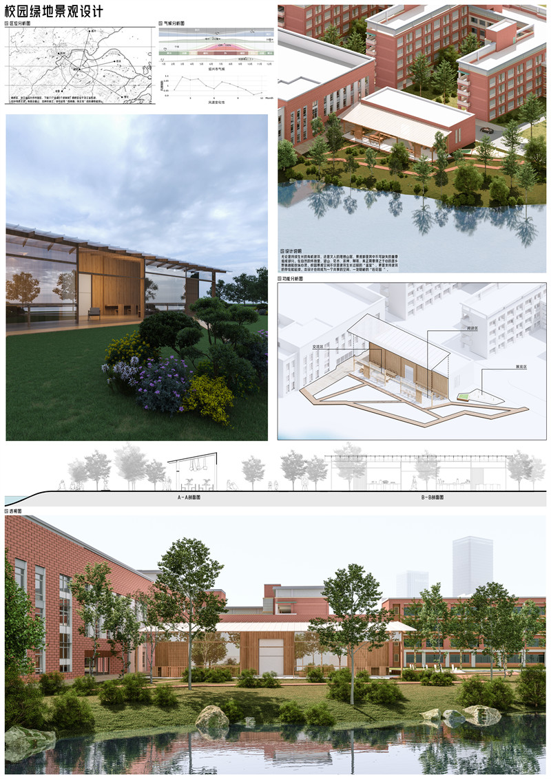 本设计旨在打造一个独特的校园景观空间,它不仅仅是一个物理上的存在,更是一个充满人文关怀与生态智慧的共享空间,一处隐秘而美丽的“后花园”。在这里,传统与现代交织,自然与人文相融,每一处细节都经过精心考量,旨在营造出一种既符合现代审美又不失文化底蕴的景观风貌。