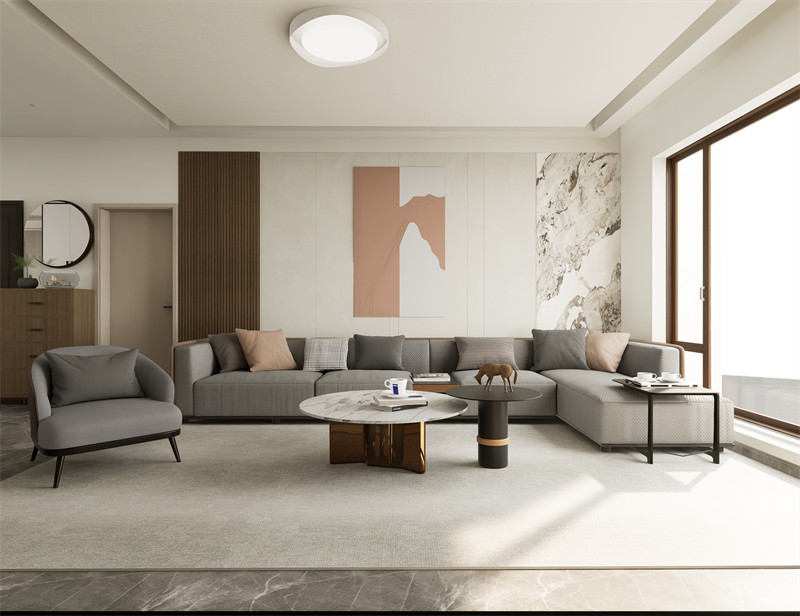 本设计主颜色选择米白色和灰色,营造简洁明快的氛围。通过家具、装饰品和艺术品引入橙色、粉色、蓝色等点缀色彩,增加空间的活力。天花板安装隐藏式LED灯,提供均匀的基础照明。在艺术品、书架等区域使用射灯,突出展示效果。阅读区域和工作区域使用可调节的台灯,满足不同光线的需求。墙面悬挂抽象艺术画作,增加空间的艺术气息。使用绿植和花卉装饰,为室内带来自然气息。本设计以“拥抱·爱”为主题,打造即独立又相互联系的私密居住空间,让居住者能感受到家的温暖和舒适。