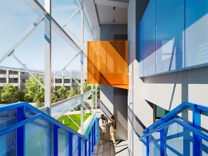 通过材料创新和空间优化,我们在实验楼的微更新中突破传统改造的局限,为校园提供了通透、舒适且富有未来感的空间。这一设计理念也将延续到校园整体更新的每一步,为学校打造更适合学习、交流和成长的环境。
