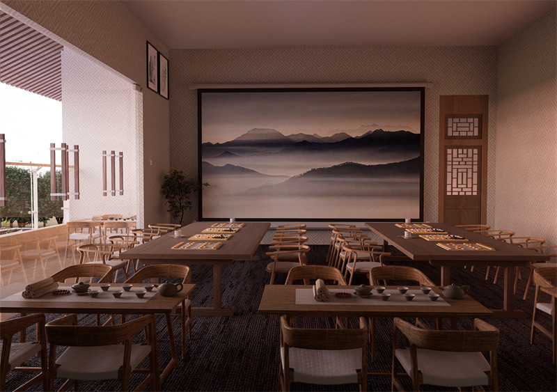 徽州地区以其秀美的山水著称,层峦叠嶂的自然景象给予了设计灵感。传统的建筑往往追求整齐划一的美感,而错落的坡屋顶则是对这一规则的一种挑战。错落有致的屋顶设计模仿了山峰起伏的轮廓线,使整个建筑群看起来就像是连绵不断的山脉,它打破了人们对建筑外貌的传统认知,带来了一种新颖的视觉冲击力。我们在力求尊重传统文化的同时,融入现代科技与环保理念,打造一个既具历史底蕴又充满活力的公共空间,古今交融,自然共生。