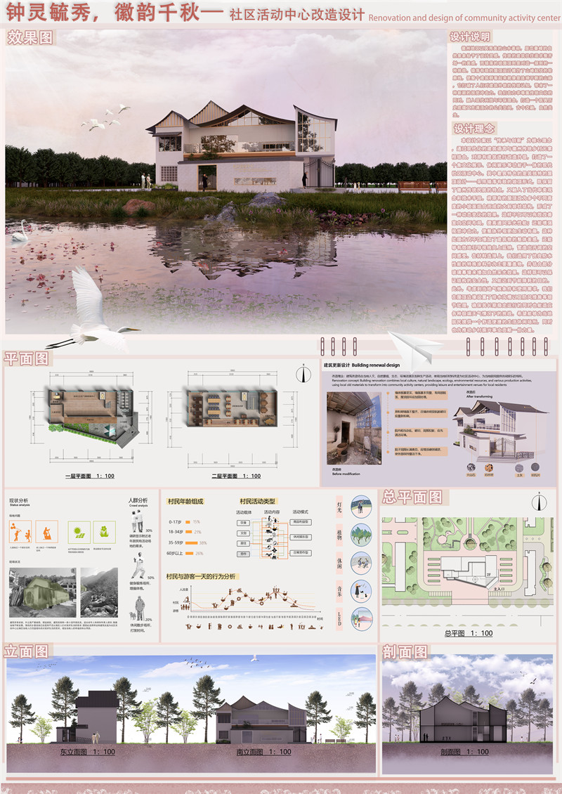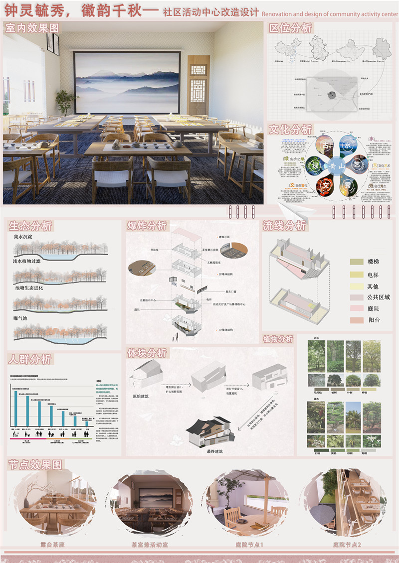 2.作品名:钟灵毓秀,徽韵千秋 – 社区活动中心改造设计。