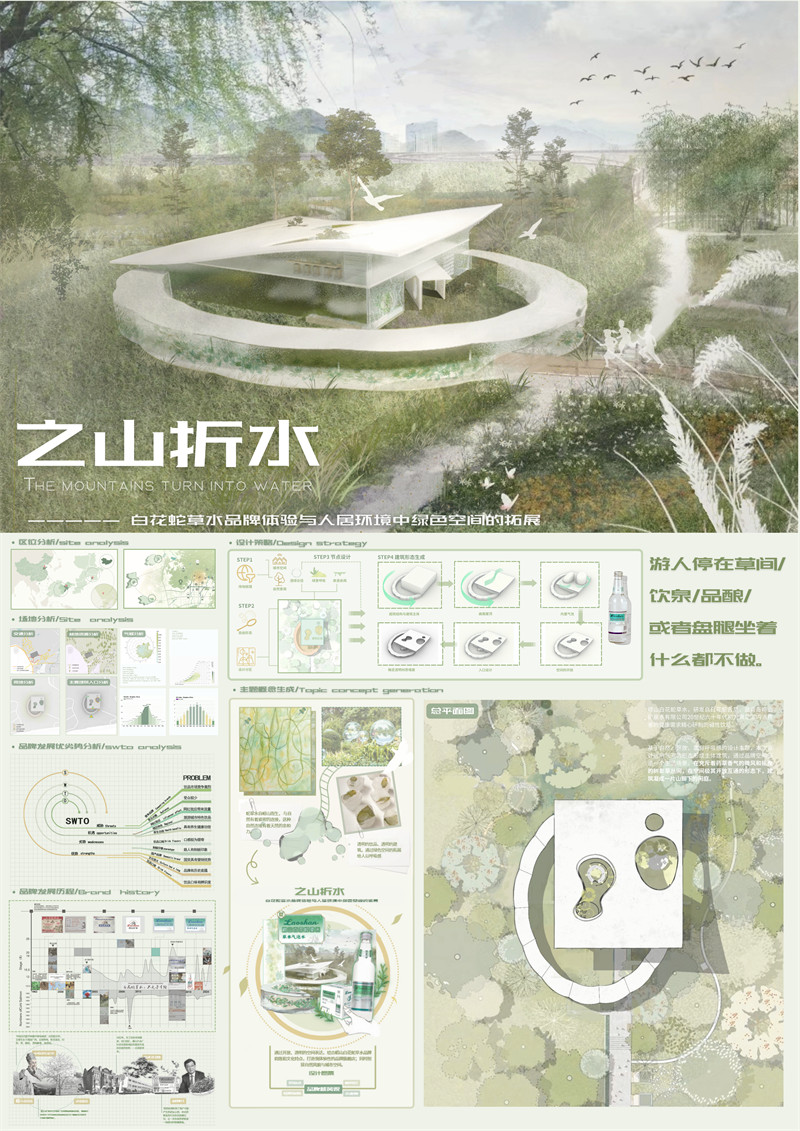 2.作品名:之山折水 – 白花蛇草水品牌体验与人居环境中绿色