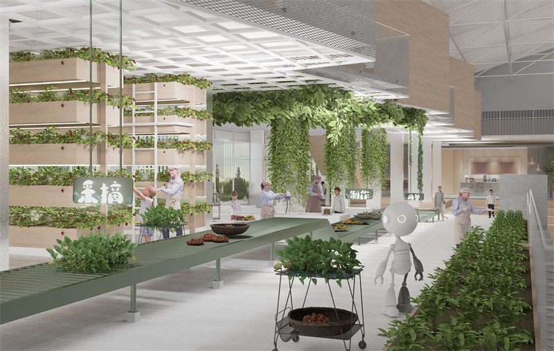 结合玻璃厂的原有功能布局我们引入了植物花园、有机食品、自然教育和商业零售四大板块,将机械大厅的精妙建筑结构与不同的植物生长进行结合,用植物引领游客重新发现蕴藏在柱阵大厅、屋顶桁架和通风角楼中的工业遗产的魅力。