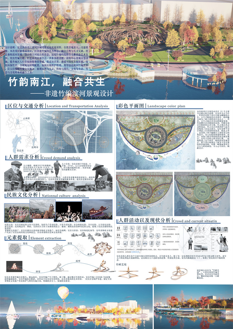 2.作品名:竹韵南江,融合共生 – 非遗竹编滨河景观设计