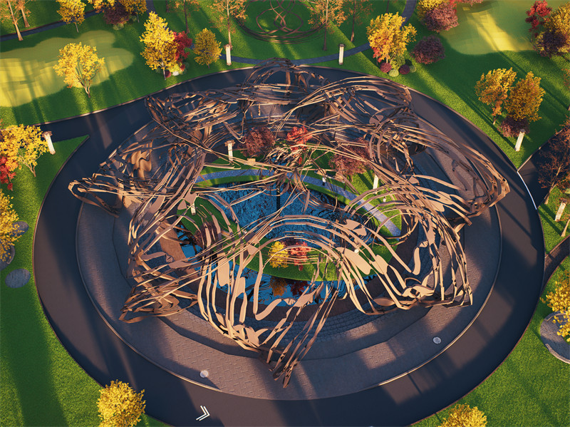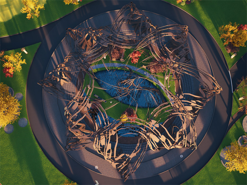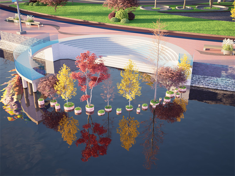 功能规划方面,中心景观区无疑是整个区域的点睛之笔,周边辅以休闲步道、亲水平台、文化展示区等多元设施。休闲步道穿梭于竹编景观之间,为居民与游客提供漫步赏景的惬意空间;亲水平台延伸至江面,拉近人与自然的距离;文化展示区则集中展示竹编历史文化与制作工艺,增强人们对非遗文化的认知与热爱。这些设施相互配合,不仅显著提升了当地居民的生活品质与幸福感,更增强了他们对本土文化的认同感与荣誉感,同时也为宜良县在 D5 全国大赛中赢得声誉、提升知名度创造了有利条件。
