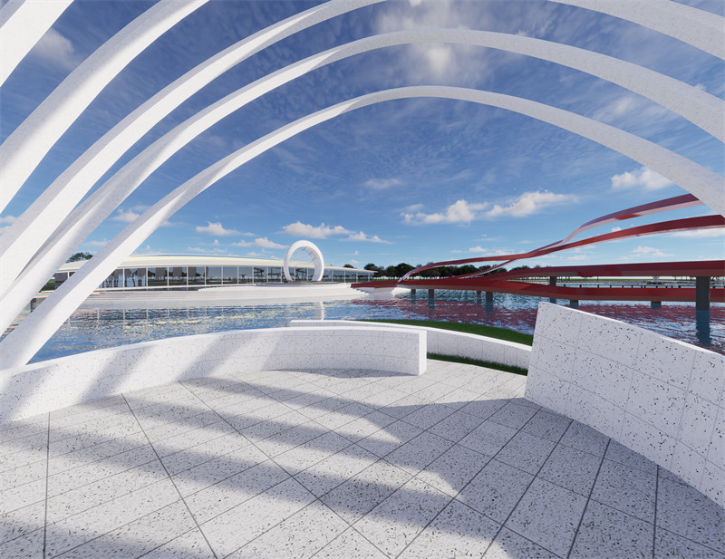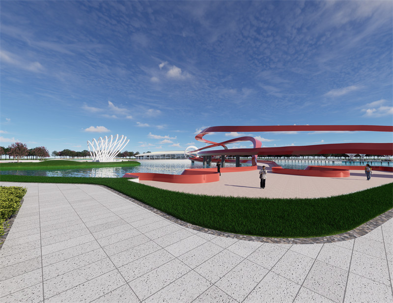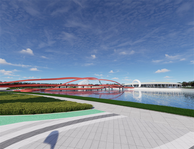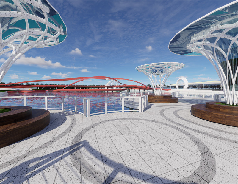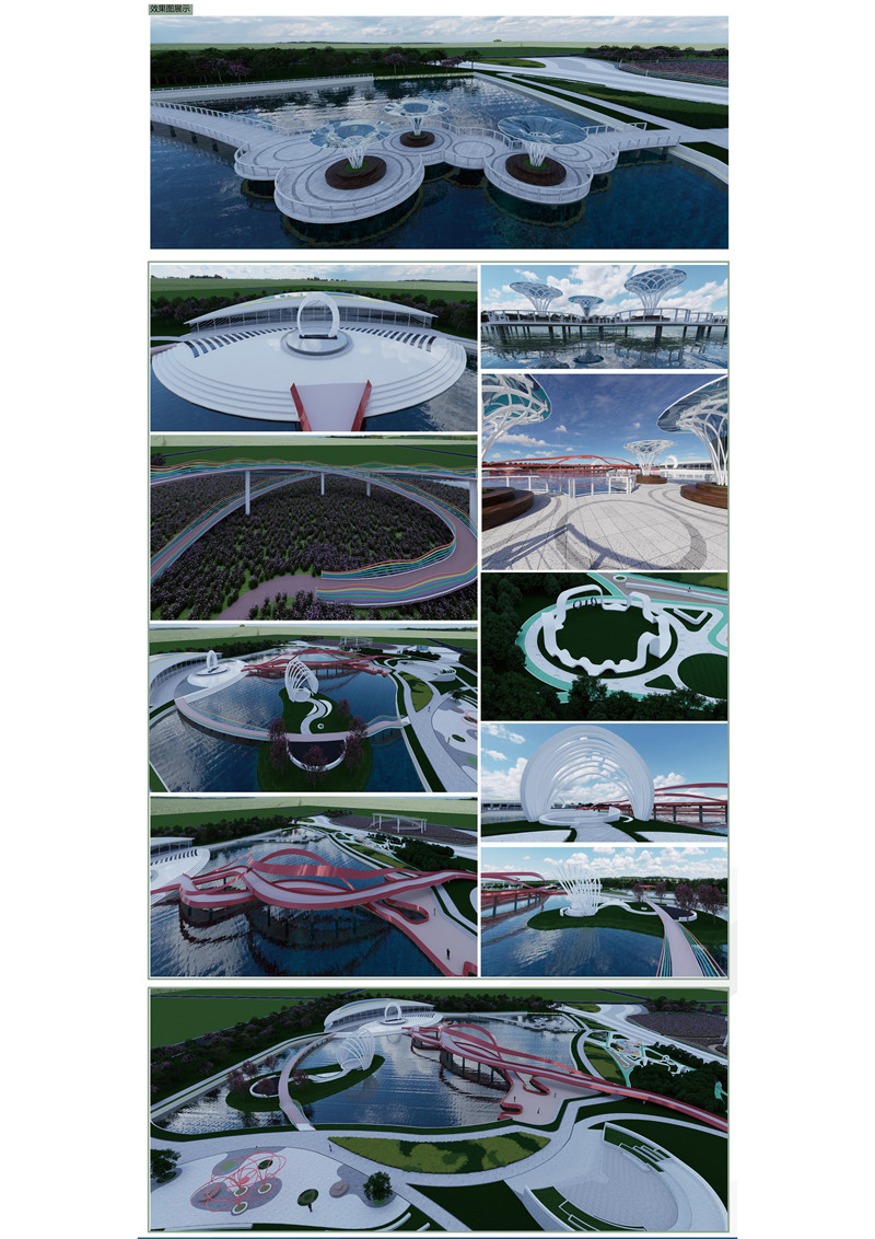 公园中的一些标志性建筑和景观令人印象深刻。例如,那些形似花瓣或月亮的造型结构,不仅是视觉上的焦点,还可能具有一定的功能性,如遮阳、避雨或作为小型表演舞台。还有那环形的天桥和水上的栈桥,为游客提供了独特的观景视角,漫步其上,仿佛置身于一幅流动的画卷之中。