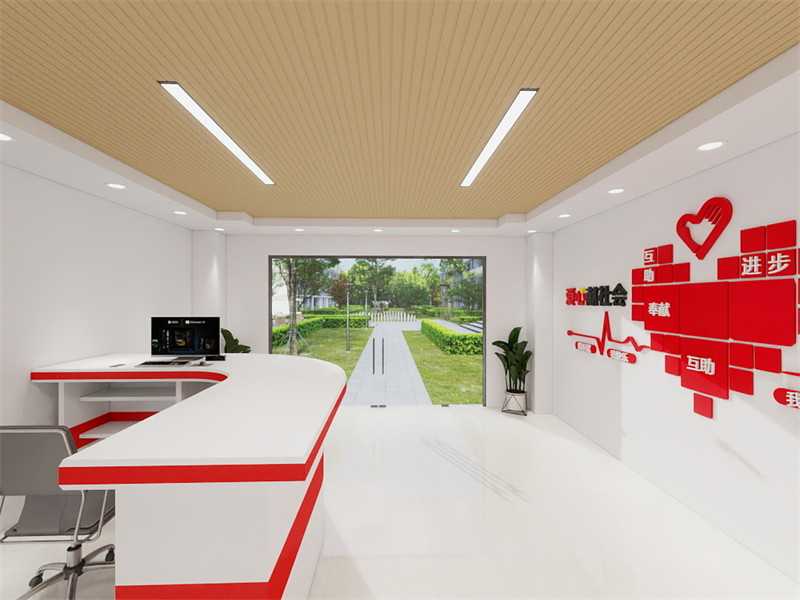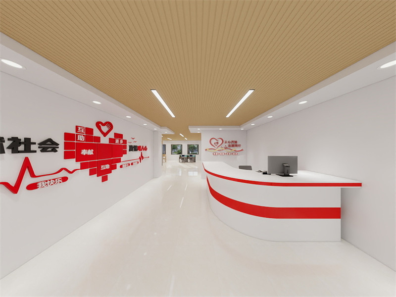 接待区:位于入口处,设有舒适的沙发和接待台。接待台的设计简洁大方,方便志愿者和来访者咨询和登记。