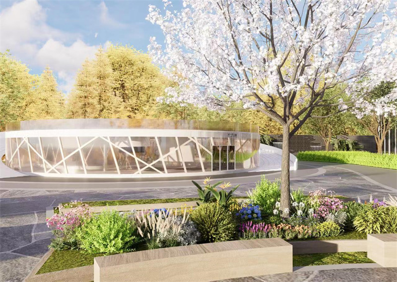 涟漪亭位于公园的水景区域,亭子的设计灵感来源于水面上的涟漪。亭内设有座椅,游客可在此静坐观景,欣赏水面的波光粼粼和周围的自然美景。