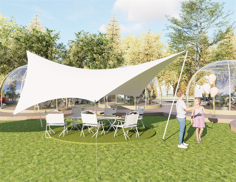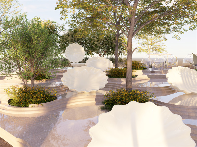 泡泡屋是公园内的一处特色景观,其设计灵感来源于珍珠的表面光泽。这些半透明的泡泡屋不仅为游客提供了独特的视觉体验,还可以作为小型咖啡厅或茶室使用,让游客在欣赏美景的同时享受美食。