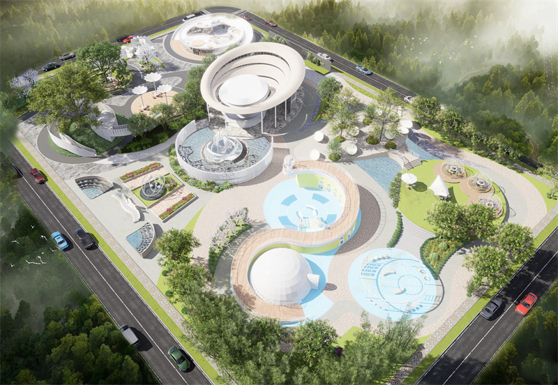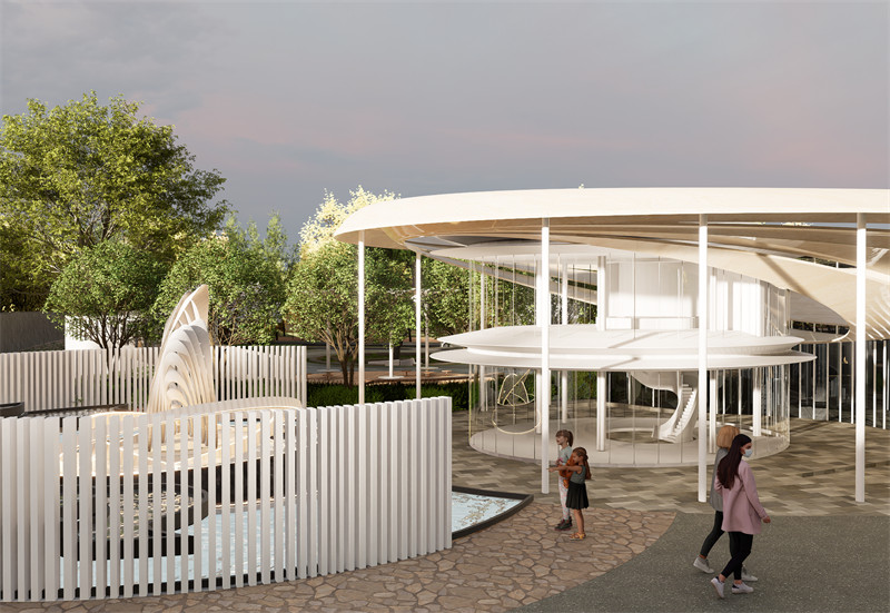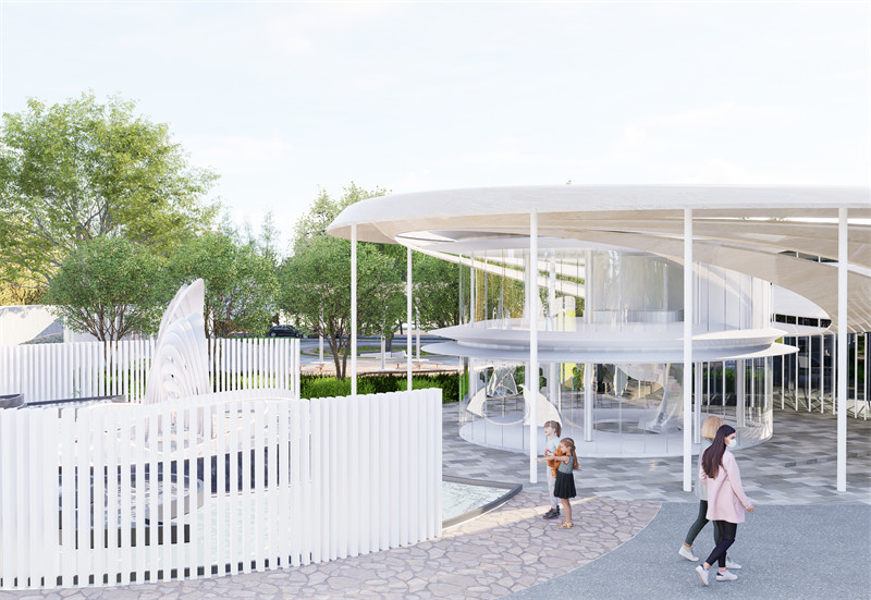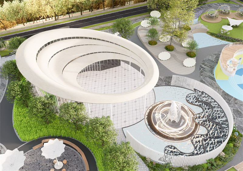 主建筑是公园的标志性建筑,其内部设有喷泉集合空间。喷泉设计以珍珠为灵感,水柱如珍珠般洒落,营造出一种梦幻而浪漫的氛围。集合空间宽敞明亮,可用于举办各类活动或作为游客休憩的场所。