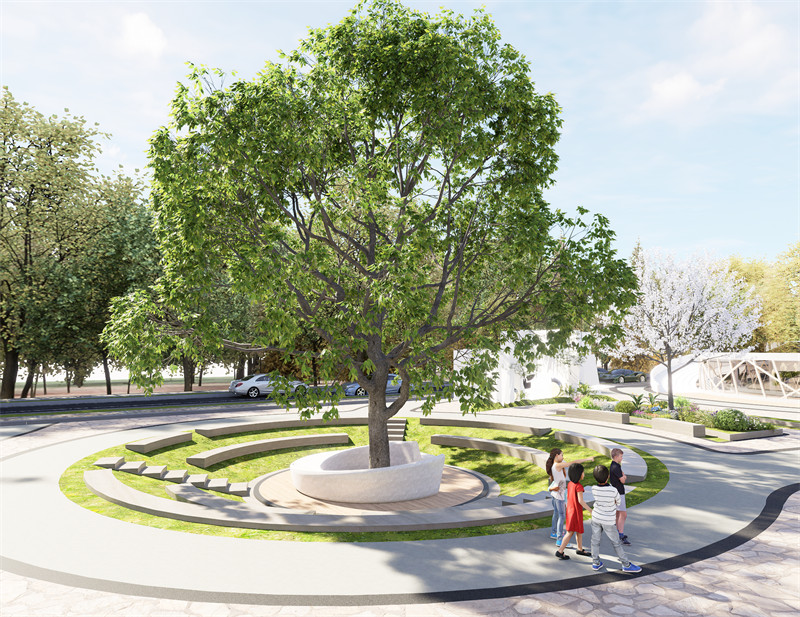 绿地坐阶是公园中的一处休闲区域,以绿色植被为背景,设置了多个阶梯式的座位,方便游客在此休息、观景或举办小型聚会。这一设计既实用又美观,为游客提供了舒适的休闲空间。