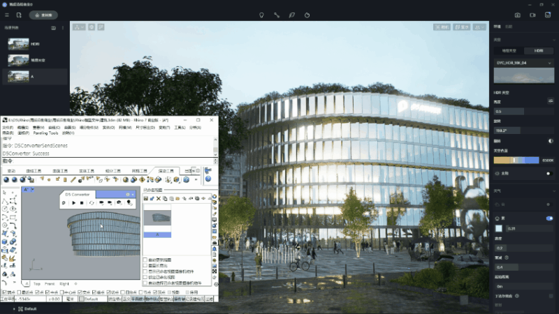 Rhino – D5实时渲染工作流通过D5转换器,链接Rhino与D5,获得丰富直观的可视化协作体验。 Rhino – D5实时同步插件 下载D5启动器 * 须先安装 D5 渲染器才可运行转换器。如需下载非实时插件,请点击此处易于快速上手D5界面简洁,材质、环境等各项参数的调试如涂画般轻量,用户友好,无需复杂的渲染技巧便可快速实现影像级画面。 海量素材库材质、模型、粒子品类众多,不断更新,完美满足各行各业不同项目需求。配合内置笔刷、散布、路径工具,快速完成场景搭建。高效率输出模型修改一键更新,设计深化与渲染调整同步进行。快速输出小样用于团队沟通、客户确认,加速方案交付落地。查看性能测试数据 预览即渲染材质、环境、灯光真实表现的同时, 确保操作过程的交互实时性。了解 D5 GI 无缝接入Rhino使用D5转换器开启实时联动、任何调整一键更新,即可随意改动你的 Rhino 模型。查看最新更新 精简、轻松的 Rhino-D5 工作流在 Rhino中 建立模型并区分材质,即可启动D5转换器一键同步,将模型、材质、场景同步至D5中,接着在D5中进行灯光布置,环境与后期调整,材质调节,使用素材库丰富场景,最后进行渲染输出。D5为Rhino用户提供了导出d5a文件、同步链接模型、设置模型平滑度等功能进阶契合工作流。查看详情 项目案例前往画廊 Kullawit InsanOmar OtoomCésar Vilchez ObregonRaziel Villete Enon支持&服务场景教学查看教程并下载案例学习 D5渲染器与 Rhino 联动 下载演示案例 更多帮助在Rhino-D5工作流使用中遇到任何疑问,都可以前往D5帮助中心进行检索,在D5官网论坛与更多用户进行交流学习,以及获取官方技术支持。帮助中心 官网论坛 即刻下载D5转换器与D5渲染器,开启实时渲染工作流! Rhino – D5实时同步插件 下载D5启动器