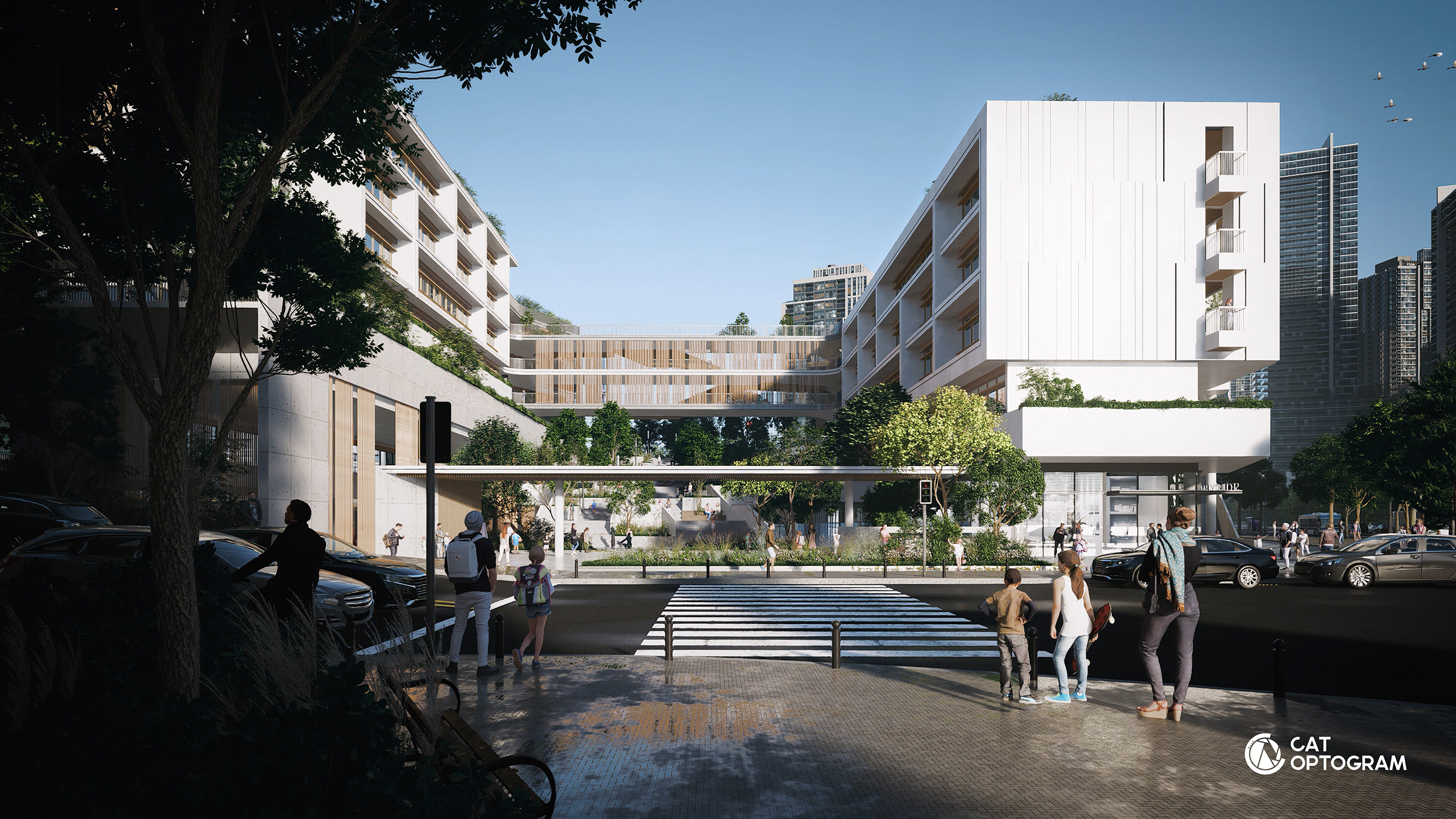 当我们的建模组完成了基础模型的构建,D5渲染组就会参与进来,根据设计要求在D5中进行角度选择、挑选,配置合适的植被。与此同时建模组继续细化模型,细化完成后,直接更新/替换模型到D5场景中。